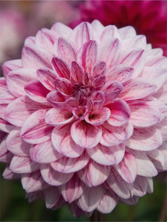 Dahlia Santander to efektowna odmiana dekoracyjna o dużych, pełnych kwiatach w subtelnym połączeniu bieli i różu. Delikatnie cieniowane płatki tworzą elegancką, harmonijną kulę, która pięknie prezentuje się zarówno w ogrodzie, jak i w bukietach. Roślina osiąga wysokość do 150 cm i wyróżnia się mocnymi pędami oraz długim, obfitym kwitnieniem od lata aż do pierwszych przymrozków. Doskonała jako kwiat cięty, a także jako ozdoba rabat i większych pojemników. Idealny wybór dla miłośników romantycznych i eleganckich kompozycji ogrodowych.