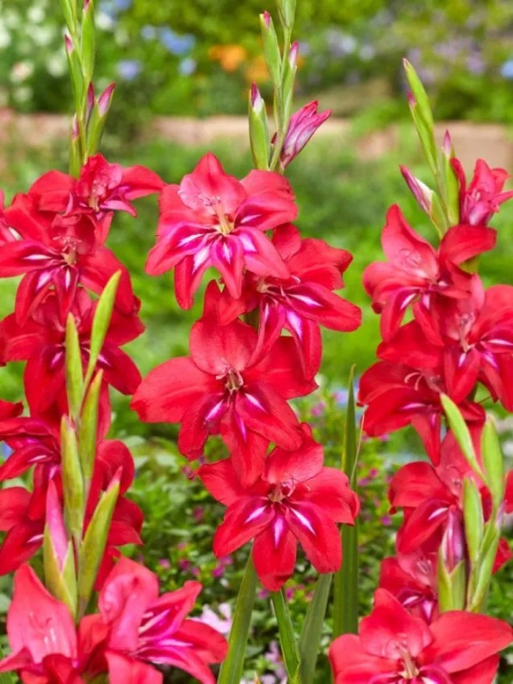 Gladiolus nanus ‘Robinetta’ to urokliwa, drobnokwiatowa i niska odmiana mieczyka, ceniona za intensywnie czerwone kwiaty z delikatnym, jaśniejszym połyskiem w centrum. Kwiaty są smukłe, eleganckie i osadzone na zgrabnych, stabilnych pędach, dzięki czemu roślina prezentuje się lekko i naturalnie, idealnie wpisując się w ogrody w stylu naturalistycznym i rabaty bylinowe.